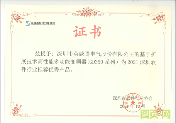 2022年1月,深圳市軟件行業(yè)協(xié)會公布2021“優(yōu)秀軟件產品”名單,在經(jīng)歷了資料審核與專家評審等多輪篩選后,英威騰“基于擴展技術高性能多功能變頻器(GD350系列)軟件”榮獲此項殊榮。
