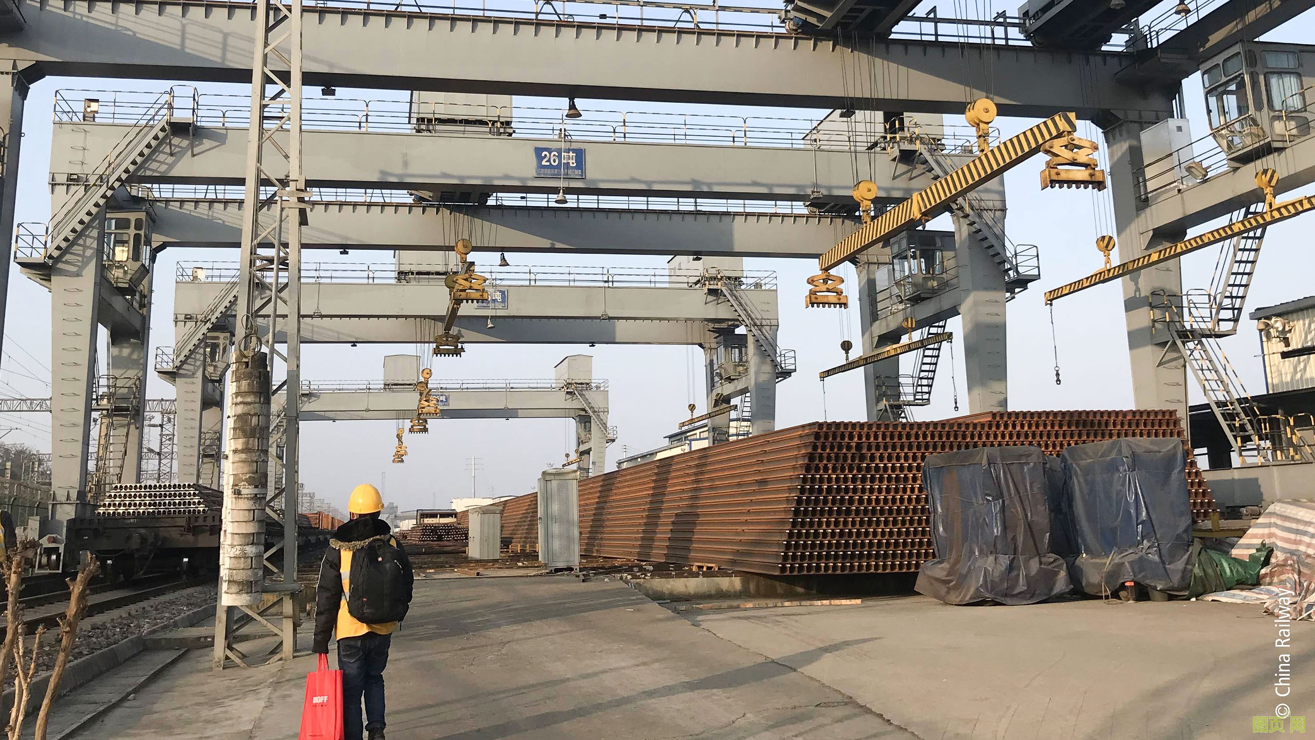 中國鐵路總公司的串聯(lián)式起重機(jī)吊裝系統(tǒng)正在運(yùn)送 100 米的鐵軌。 中國鐵路總公司的串聯(lián)式起重機(jī)吊裝系統(tǒng)正在運(yùn)送 100 米的鐵軌。