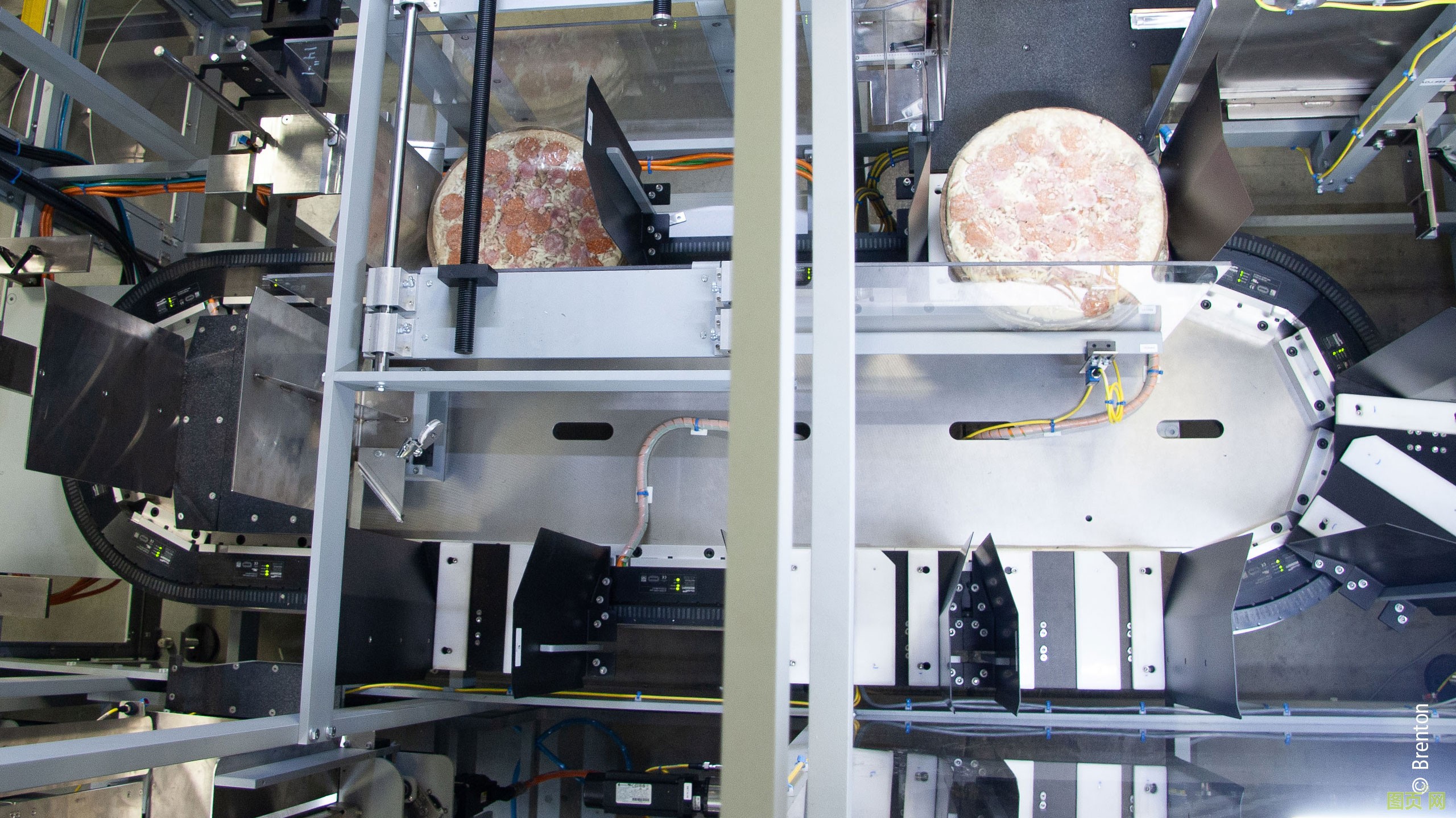 Brenton 公司主要為食品、飲料和制藥行業(yè)生產(chǎn)集成式后道包裝系統(tǒng),包括紙箱包裝、裝盒、機(jī)器人碼垛和物料輸送。公司成立至今已有 30 年,目前隸屬于 ProMach 集團(tuán)。一家美國(guó)大型合同包裝商邀請(qǐng) Brenton 一起合作,共同完成一項(xiàng)頗具挑戰(zhàn)性的速凍披薩包裝任務(wù)。這家快節(jié)奏的工廠要求包裝機(jī)能夠隨機(jī)定時(shí)進(jìn)料,以及處理 26 個(gè)不同的速凍披薩 SKU,這些 SKU 有些采用紙盒包裝,有些則采用簡(jiǎn)單的塑料薄膜收縮包裝?!斑@個(gè)應(yīng)用需要我們消除不同規(guī)格的產(chǎn)品切換所耗費(fèi)的大量時(shí)間,給我們提出了不小的挑戰(zhàn)。從 10 英寸到 15 英寸披薩的切換需要耗時(shí)的機(jī)械調(diào)整?!盉renton 公司技術(shù)副總裁 Mike Grinager 解釋道。“我們還必須在不損壞產(chǎn)品的前提下實(shí)現(xiàn)每分鐘 15 個(gè)紙箱的高吞吐量。由于披薩在包裝生產(chǎn)線上減速運(yùn)轉(zhuǎn)時(shí),會(huì)以不同的方向堆放 15 個(gè)不同高度的披薩,因此情況會(huì)變得非常復(fù)雜。”