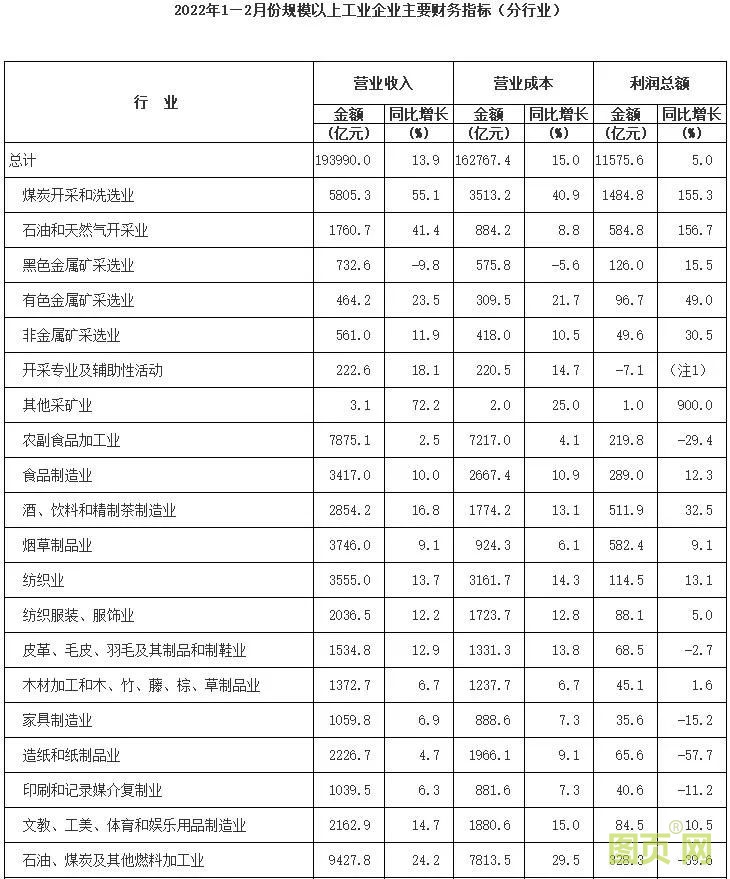 3月27日,國(guó)家統(tǒng)計(jì)局發(fā)布了2022年1-2月份全國(guó)規(guī)模以上工業(yè)企業(yè)利潤(rùn)增長(zhǎng)情況。1-2月份,全國(guó)規(guī)模以上工業(yè)