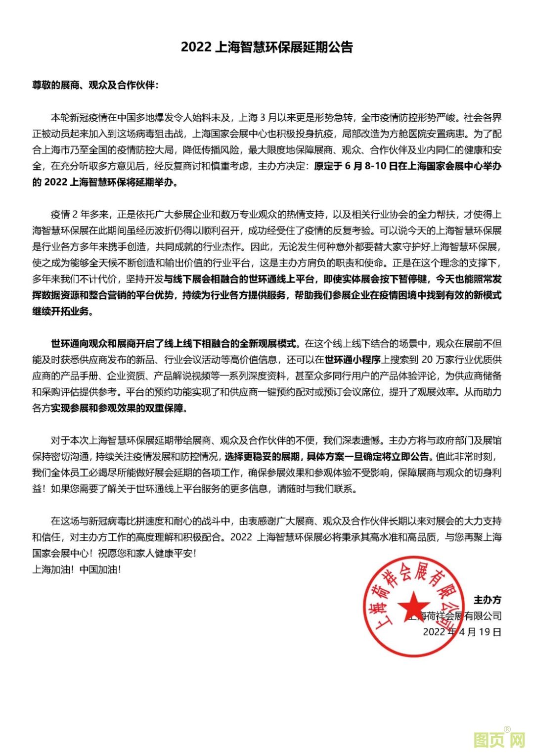 重要通知 | 2022上海智慧環(huán)保展延期,世環(huán)通服務上線!
