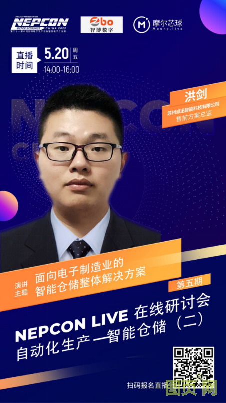 5月20日周五下午2點,NEPCON 攜手合作伙伴智博數(shù)字聯(lián)合舉辦第五期 NEPCON LIVE 在線研討會:自動化生產(chǎn)--智能倉儲(第二期),本次活動將圍繞倉儲集成方案、物流解決方案、工廠數(shù)字化整體解決方案為聽眾帶來案例及技術(shù)分享,助力于提升行業(yè)在倉儲物流環(huán)節(jié)的整體自動化、數(shù)字化及智能化水平。
