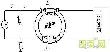 針對(duì)避雷器殘壓遠(yuǎn)遠(yuǎn)大于二次設(shè)備芯片耐雷水平的情況,可采用一種新型的中和變壓器對(duì)其進(jìn)行衰減。