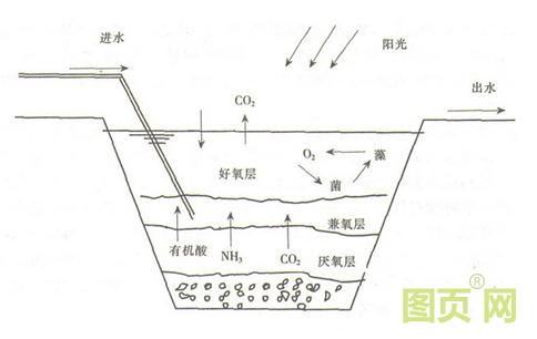 在傳統(tǒng)基礎(chǔ)上改進(jìn)的高效藻類(lèi)穩(wěn)定塘比傳統(tǒng)的穩(wěn)定塘有更多的生物,并增加攪拌裝置,促進(jìn)污水混合;調(diào)節(jié)塘內(nèi)的氧氣和二氧化碳的濃度,及水溫和水質(zhì),從而提高有機(jī)物、氮和磷的去除率。高效藻類(lèi)穩(wěn)定塘受光照、溫度、水深和塘內(nèi)流速的影響大。