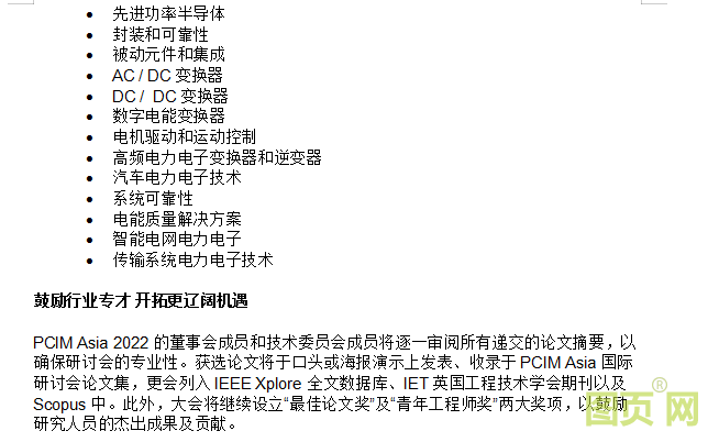 的前沿研究成果。PCIM Asia 國(guó)際研討會(huì)是業(yè)界新產(chǎn)品和新技術(shù)的風(fēng)向標(biāo),業(yè)界能通過(guò)此