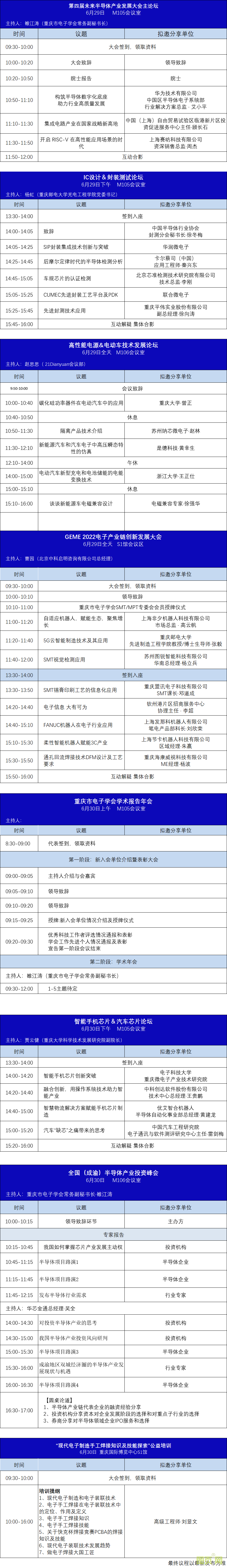 同期將舉辦由重慶經(jīng)開(kāi)區(qū)?Qualcomm中國(guó)?中科創(chuàng)達(dá)聯(lián)合創(chuàng)新中心聯(lián)合主辦的第四屆未來(lái)半導(dǎo)體產(chǎn)業(yè)發(fā)展大會(huì),GEME 2022電子產(chǎn)業(yè)鏈創(chuàng)新發(fā)展大會(huì),由重慶市半導(dǎo)體行業(yè)協(xié)會(huì)與成都電子信息產(chǎn)業(yè)生態(tài)圈聯(lián)盟聯(lián)合主辦的成渝地區(qū)電子信息產(chǎn)業(yè)協(xié)同發(fā)展研討會(huì)。會(huì)議聚焦產(chǎn)業(yè)熱點(diǎn)痛點(diǎn),打造產(chǎn)學(xué)研用一體深度互動(dòng)平臺(tái),構(gòu)建產(chǎn)業(yè)生態(tài)交流長(zhǎng)效機(jī)制。