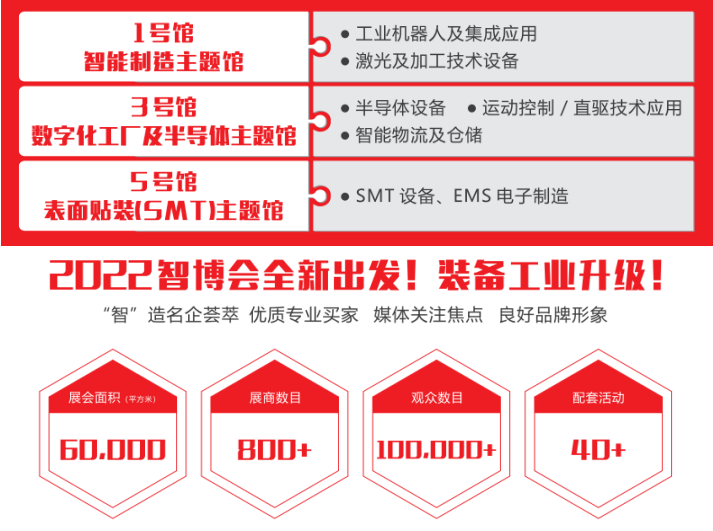 ⑦三個館展出主題不同1號館(智能制造主題館:以工業(yè)機器人及集成運用、激光及加工技術(shù)設(shè)備為主)、3號館(數(shù)字化工廠及半導(dǎo)體主題館:以半導(dǎo)體設(shè)備、工控核心零部件及運動控制 、智能物流及倉儲為主)、5號館(表面貼裝SMT主題館:以SMT設(shè)備、EMS電子制造為主);