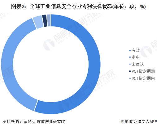 目前,全球工業(yè)信息安全行業(yè)共有118684項(xiàng)專(zhuān)利處于“有效”狀態(tài),占全部專(zhuān)利數(shù)量的55.51%;處于“審中”狀態(tài)的有82147項(xiàng),占比38.42%。