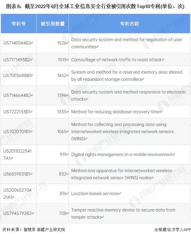 3、全球工業(yè)信息安全行業(yè)專(zhuān)利競(jìng)爭(zhēng)情況