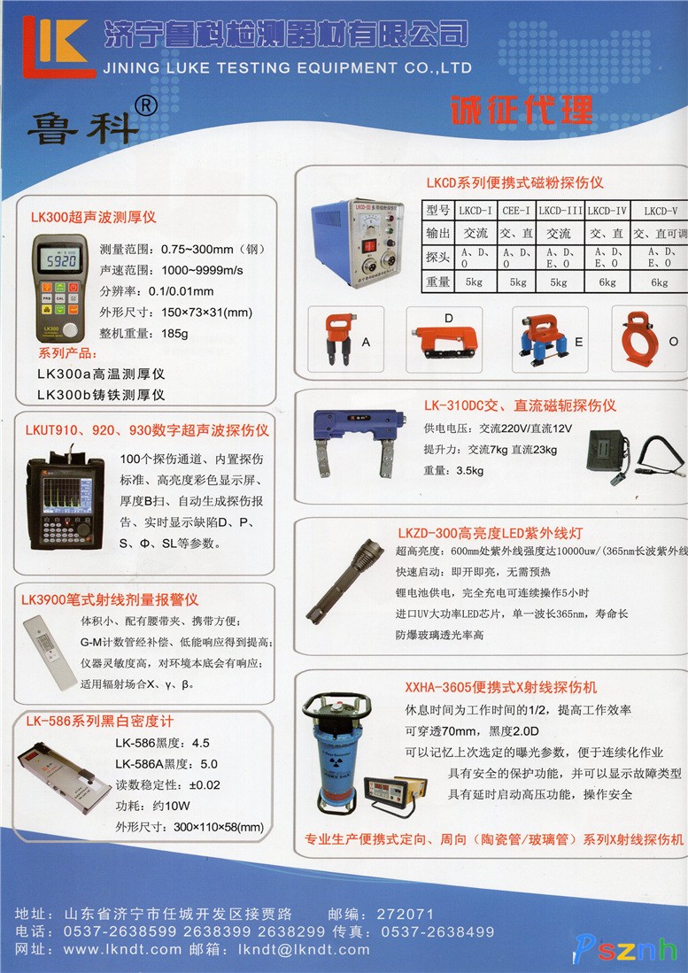 濟寧魯科檢測器材有限公司 LK300、UTM系列超聲波測厚儀 CDX系列便攜式磁粉探傷儀