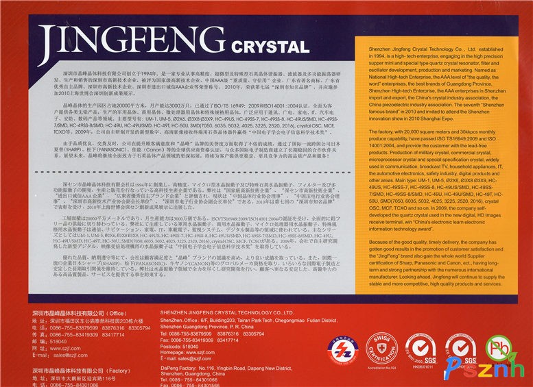 由于品質(zhì)優(yōu)良,交貨及時(shí),公司在提升顧客滿意度和“晶峰”品牌的美譽(yù)度方面取得了不俗的成績(jī),通過了國(guó)際一流跨國(guó)公司日本夏普(SHARP)、松下(PANASONIC)、佳能(Canon)等的全球供應(yīng)商資格認(rèn)證,與眾多國(guó)際電子制造商建立了長(zhǎng)期穩(wěn)固的合作伙伴關(guān)系。展望未來,晶峰將繼續(xù)全面致力于石英晶體產(chǎn)品領(lǐng)域的更深拓展,持續(xù)為客戶提供更穩(wěn)定、更具競(jìng)爭(zhēng)力的高品質(zhì)產(chǎn)品和服務(wù)!