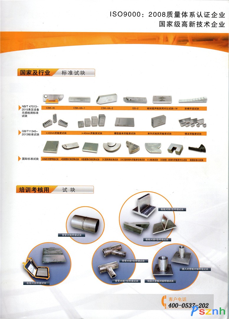 本公司生產(chǎn)的無損檢測試塊已成為電力系統(tǒng)、鐵路系統(tǒng)、核動力運行研究所、“西氣東輸”工程、中海油輸送管道工程、哈鍋、上鍋、東鍋無損檢測試塊的定點生產(chǎn)單位。