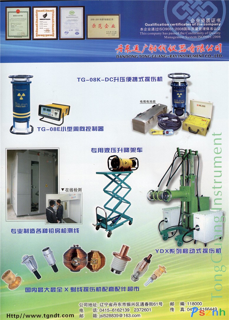 丹東市通廣射線儀器有限公司地處我國最大的邊境城市——丹東,與朝鮮人民民主共和國隔江相望。這里是中國射線工業(yè)的發(fā)祥地,孕育著無限商機。公司親身經(jīng)歷了十幾年的X射線探傷機的潛心研發(fā)、生產(chǎn),從狹窄的專業(yè)領(lǐng)域向廣闊的應(yīng)用空間迅猛發(fā)展的成長歷程,成為今天的研發(fā)、制造、營銷和服務(wù)的專業(yè)化公司;也是全國唯一的X射線探傷機超市。
