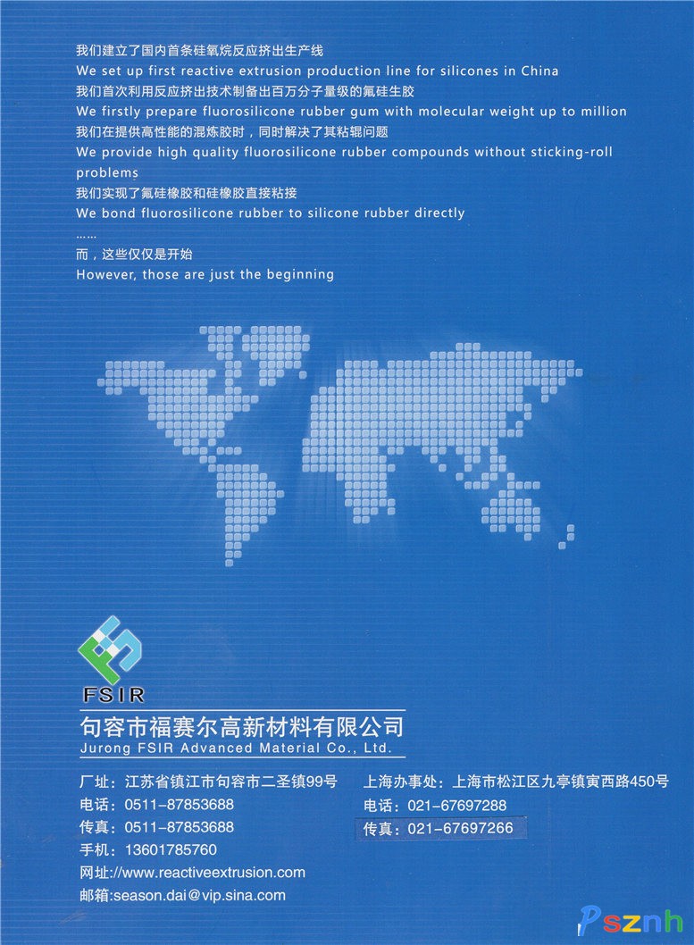 公司目前以生產(chǎn)氟硅生膠和氟硅混煉膠為主。以反應(yīng)擠出技術(shù)制備得到的氟硅生膠克服了F3單體聚合時(shí)一些技術(shù)難題,與國內(nèi)釜式生產(chǎn)的氟硅生膠相比具有產(chǎn)品質(zhì)量高,品質(zhì)穩(wěn)定等特點(diǎn),可完全取代進(jìn)口產(chǎn)品。