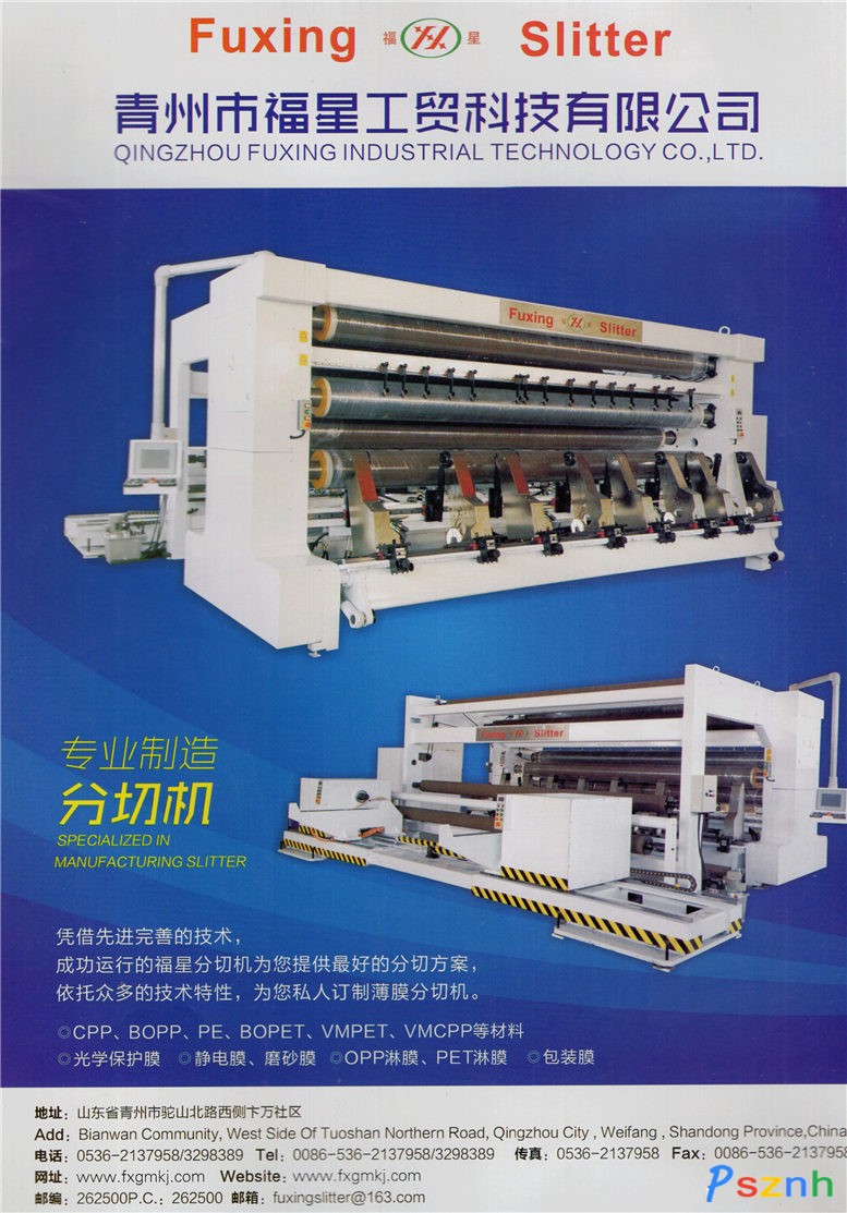 青州市福星包裝材料有限公司,座落于美麗的花都——青州,公司專業(yè)生產(chǎn)cpp鍍鋁膜、pet鍍鋁膜、bopp鍍鋁膜、流延復合膜等,并有包裝機械中心,專業(yè)生產(chǎn)中大型分切機、復卷機及其配套件。