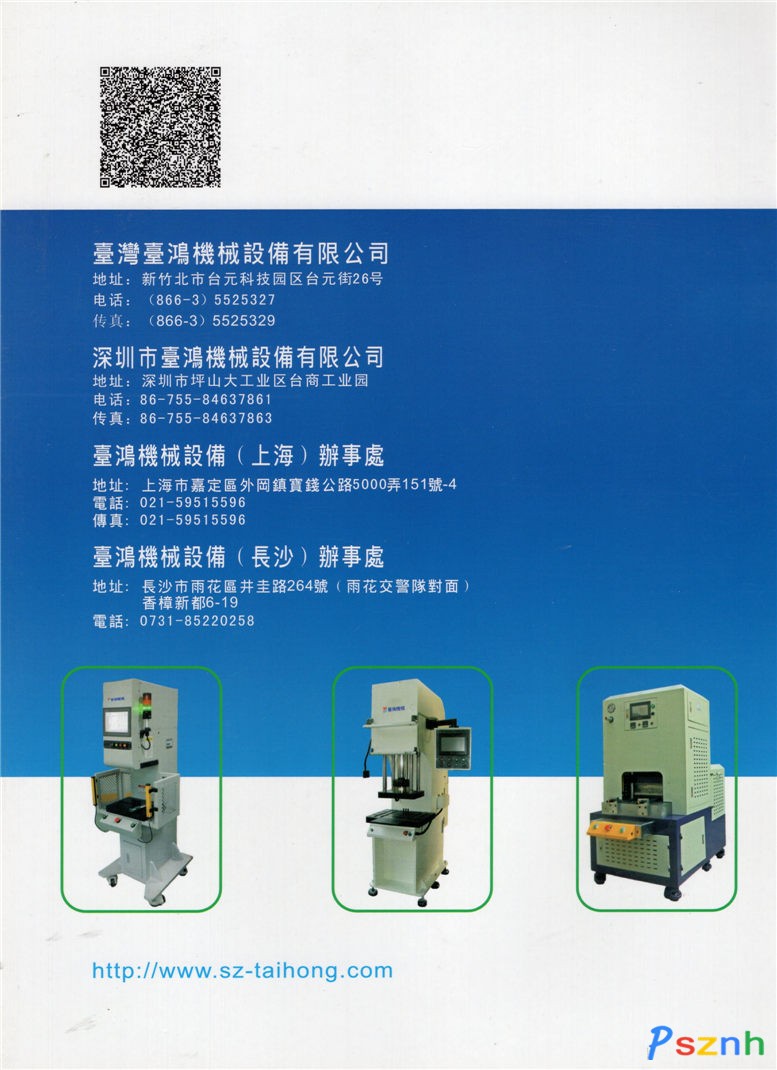 深圳市臺鴻機械設(shè)備有限公司系臺灣臺鴻企業(yè)股份有限公司大陸的生產(chǎn)廠家,專業(yè)設(shè)計、開發(fā)、生產(chǎn)、銷售精密液壓設(shè)備、數(shù)控機械、自動化機械及其零組件。 本公司產(chǎn)品廣泛用于電子、手機、壓鑄,五金、汽車、家電及塑膠、手袋、模具等行業(yè),公司主要產(chǎn)品有,數(shù)控液壓機、氣動增壓機、弓形機,四柱油壓機、IMD熱壓成型機、壓鑄品水口專用沖邊機,四柱型油壓拉伸機,精密伺服電子壓力機,非標自動化等。 公司以客戶至上、精益求精為宗旨,采用臺灣及日本的液壓件和電路控制系統(tǒng),生產(chǎn)出能耗低、精度高、效率高的空油壓設(shè)備,贏得廣大用戶的一致贊譽與好評。 公司理念:將零缺點、具有競爭力的產(chǎn)品和服務(wù),準時送達客戶手中!