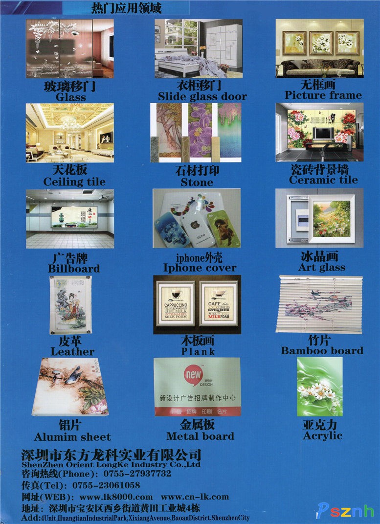 深圳市東方龍科實(shí)業(yè)有限公司成立于2004年,經(jīng)過十余年發(fā)展現(xiàn)已成為占地5000平方米,專業(yè)技術(shù)人員40余人,員工200余人專業(yè)生產(chǎn)萬能平板打印機(jī)的權(quán)威公司,深圳市東方龍科萬能平板打印機(jī)有UV、 A4、 A3 、A2 、A1、 A0、 A++等十多款機(jī)型,(也可分為經(jīng)濟(jì)型萬能平板打印機(jī)、加長型萬能平板打印機(jī)、高速型萬能平板打印機(jī)等型號(hào)),以及服裝印花機(jī)·玻璃印花機(jī)·手機(jī)殼印花機(jī)·地毯印花機(jī)·瓷磚背景墻噴繪機(jī)·金屬印花機(jī)·亞克力PVC平板噴繪機(jī) 等專用機(jī)型。