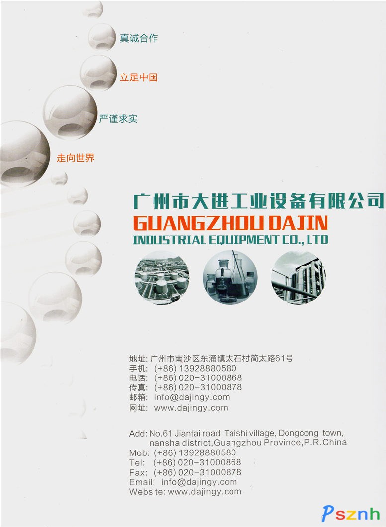廣州市大進(jìn)工業(yè)設(shè)備有限公司專(zhuān)業(yè)生產(chǎn)、銷(xiāo)售化工泵和化學(xué)藥液過(guò)濾機(jī)的企業(yè)。公司擁有十多年的生產(chǎn)經(jīng)驗(yàn)和技術(shù),長(zhǎng)期致力于各種化工泵和過(guò)濾機(jī)的技術(shù)研究,不斷提高產(chǎn)品的科技含量及產(chǎn)品質(zhì)量。