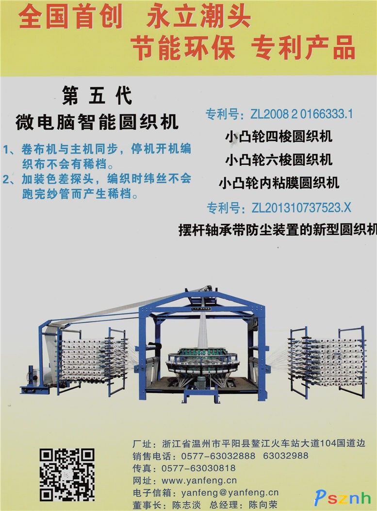 本公司研發(fā)新產(chǎn)品有70多項(xiàng)獲得國(guó)家專利,研發(fā)成功世界上第一臺(tái)使用1.5千瓦電機(jī)的節(jié)能擺臂無油小凸輪四梭圓織機(jī),第一臺(tái)使用觸摸屏伺服電機(jī)數(shù)控系統(tǒng)調(diào)整拉伸比的大型動(dòng)輥筒拉絲機(jī),第一臺(tái)可實(shí)行辦公室聯(lián)網(wǎng)遠(yuǎn)程管理的觸摸屏微電腦智能圓織機(jī)和智能內(nèi)粘膜復(fù)合機(jī)。