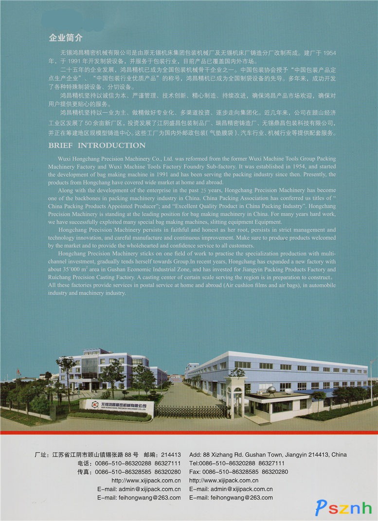 昌氏企業(yè)前身,是創(chuàng)建于1954年的江陰市顧山農(nóng)具廠,1984年更名為無錫機(jī)床股份有限公司鑄造分廠, 1991年開發(fā)軟包裝制袋設(shè)備。經(jīng)過20多年的發(fā)展,昌氏企業(yè)及產(chǎn)品分別獲得了全國(guó)包裝機(jī)械骨干企業(yè)、中國(guó)包裝產(chǎn)品定點(diǎn)生產(chǎn)企業(yè)、中國(guó)包裝行業(yè)優(yōu)秀產(chǎn)品、江蘇省民營(yíng)科技企業(yè)、無錫市高新技術(shù)企業(yè)、無錫市名牌產(chǎn)品等稱號(hào),已成為全國(guó)制袋設(shè)備的先導(dǎo)企業(yè)。公司通過了ISO9001質(zhì)量體系認(rèn)證,安全標(biāo)準(zhǔn)化認(rèn)證及清潔生產(chǎn)認(rèn)證,公司產(chǎn)品通過了歐盟CE認(rèn)證 ,SGS認(rèn)證。公司在誠(chéng)信經(jīng)營(yíng)中也取得了一系列榮譽(yù),連年被銀行業(yè)評(píng)定為AAA級(jí)資信企業(yè),并被無錫市七部門聯(lián)合授予“爭(zhēng)創(chuàng)守信用、講信譽(yù)、重信義”先進(jìn)單位。