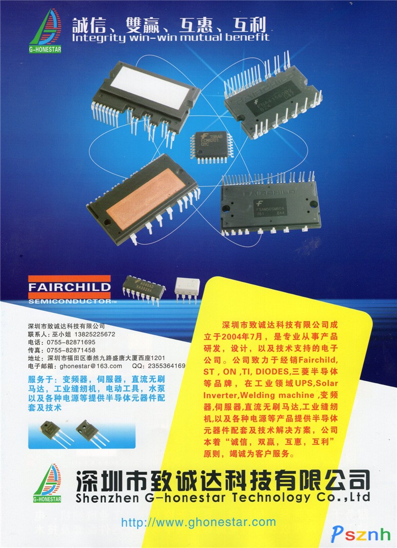 公司致力于經(jīng)銷Fairchild, ST , ON ,TI, 三菱半導體等品牌,在工業(yè)領域UPS,Solar Inverter,Welding machine ,變頻器,伺服器,直流無刷馬達,工業(yè)縫紉機,以及各種電源等產(chǎn)品提供半導體元器件配套及技術解決方案,公司本著“誠信,雙贏,互惠,互利”原則,竭誠為客戶服務