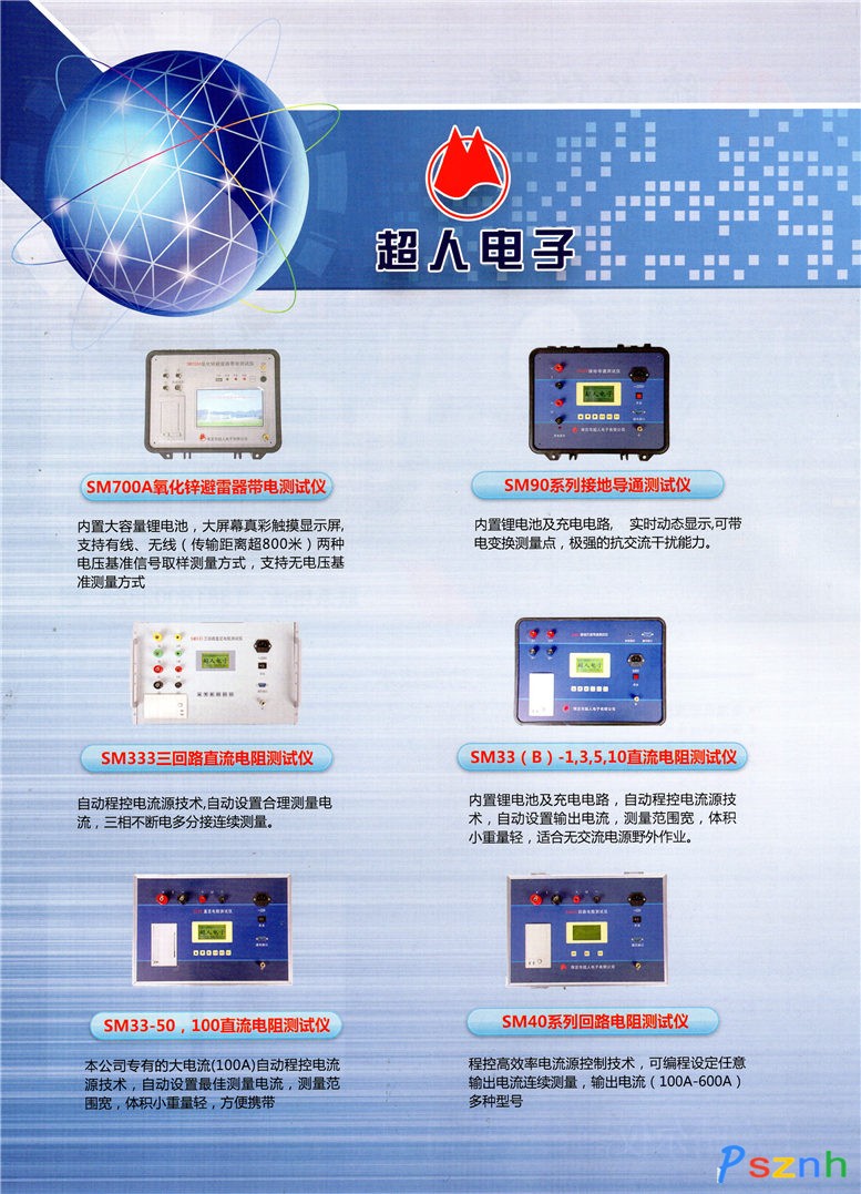 公司擁有雄厚的技術(shù)力量,并依托河北大學計算機學院作為技術(shù)后盾,和華北電力大學及天威保變電氣股份公司有著密切的合作關(guān)系,大量的開發(fā)投入使得公司每年都有獨具創(chuàng)新的新產(chǎn)品問世。公司擁有SM33系列(1-100A)直流電阻測試儀、SM333三回路變壓器直流電阻測試儀、SM40系列回路電阻測試儀、SM500系列變壓器損耗及線路參數(shù)測試儀、SM503變壓器短路阻抗測試儀、SM506變壓器容量分析儀、SM63系列變壓器變比測試儀、SM80變壓器有載調(diào)壓開關(guān)測試儀、SM90系列接地引線導通測試儀等多項完全獨立開發(fā)產(chǎn)品。其中SM33大電流程控電流源技術(shù)、SM333三回路技術(shù)、SM40連續(xù)大電流輸出技術(shù)、SM500系列數(shù)字處理技術(shù)、SM506模糊推理分析技術(shù)、SM63接線方式自動識別及Z-型變壓器自動測量技術(shù)等多項技術(shù)是國內(nèi)首創(chuàng),在同行業(yè)遙遙領(lǐng)先,并成為同行業(yè)追逐的目標。
