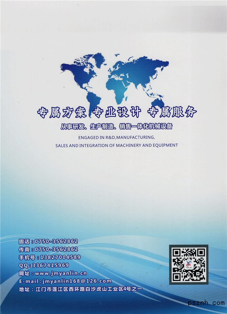 江門(mén)市燕林機(jī)械設(shè)備有限公司座落于著名“中國(guó)僑鄉(xiāng)之都”江門(mén)市。是一家從事研發(fā)、生產(chǎn)制造、銷(xiāo)售一體化機(jī)械設(shè)備生產(chǎn)企業(yè),“專屬方案、專業(yè)設(shè)計(jì)、專屬服務(wù)”經(jīng)過(guò)多年