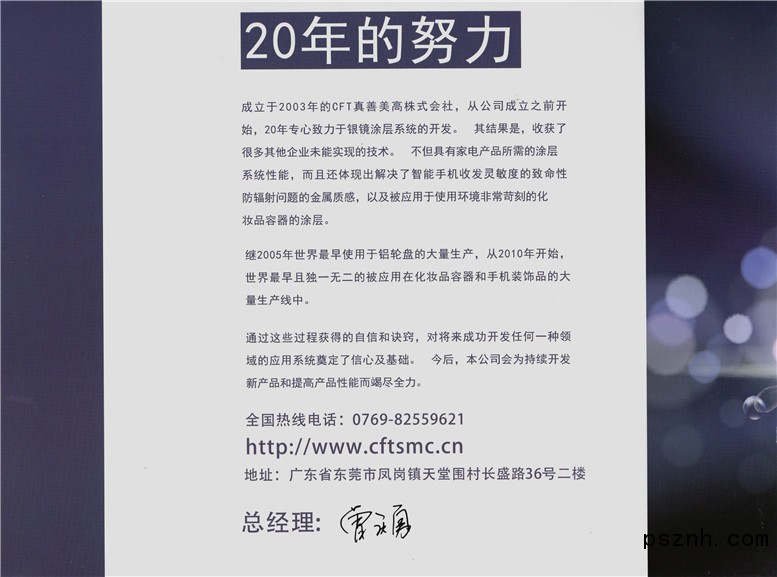 2005年世界最早的鋁輪批量生產(chǎn)線投入使用后,2010年起,化妝品容器和手機配件批量生產(chǎn)線也在全球最早地投入使用。這樣的成就,離不開真善美高各位員工的努力與有關企業(yè)的工作人員的深切關心,以及持續(xù)不斷的對真善美高的支持。通過這個過程,真善美高收獲了自信并取得了核心技術,未來,真善美高會一直以實現(xiàn)開發(fā)適合不同領域的腹膜系統(tǒng)為己任。