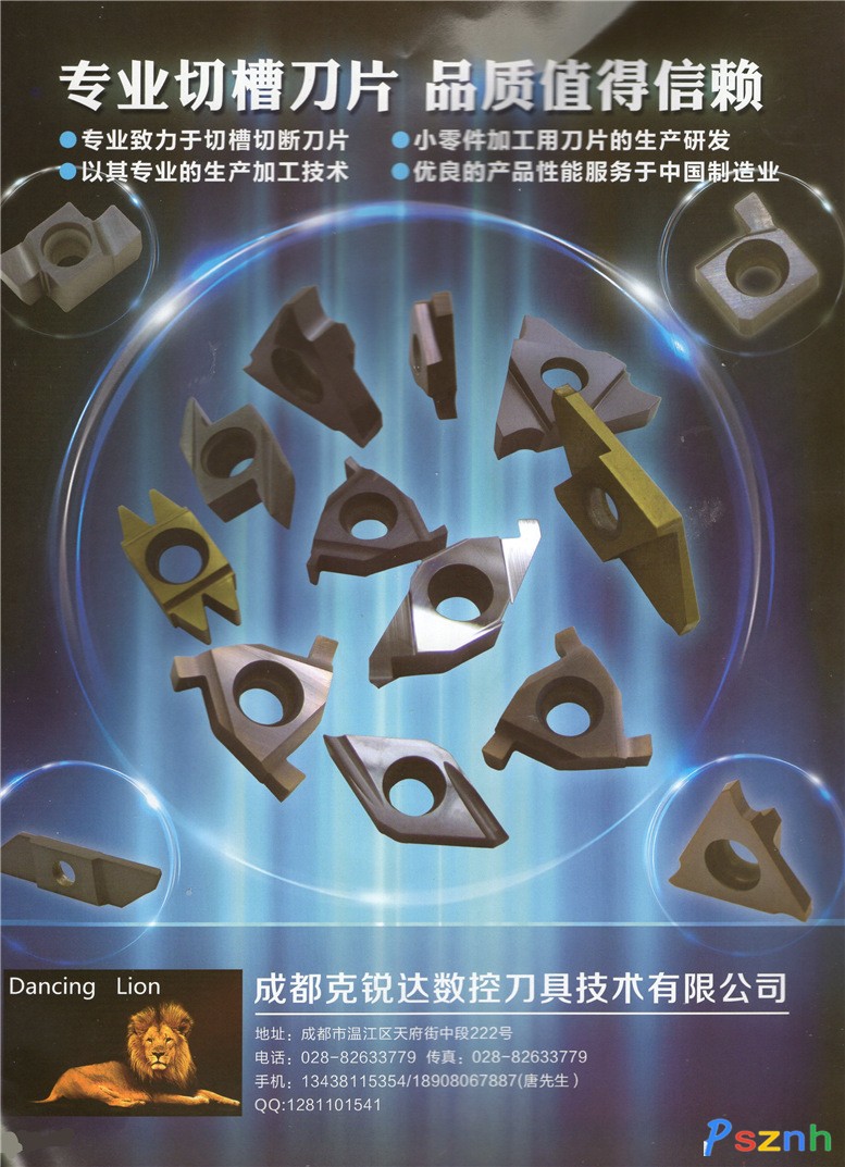 成都克銳達(dá)數(shù)控刀具技術(shù)有限公司主要生產(chǎn)各類數(shù)控機(jī)床用高精度硬質(zhì)合金可轉(zhuǎn)位精鏜刀片、切槽刀、切斷刀、車刀、鉸刀、淺孔鏜鉆刀片及CNC機(jī)床用硬質(zhì)合金刀片.和機(jī)夾木工刀片,仿形刀具;并承接來(lái)料、來(lái)樣、來(lái)圖加工和刀具返修業(yè)務(wù).