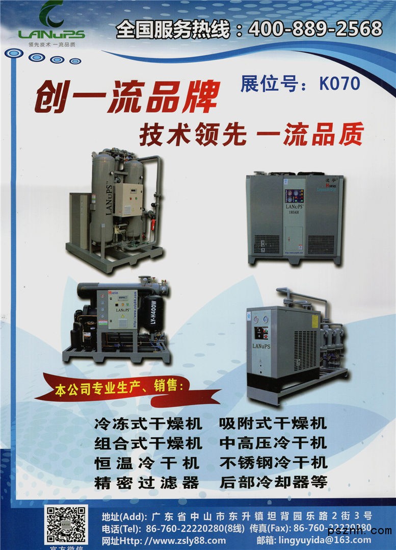 中山市凌宇機(jī)械有限公司 壓縮空干燥機(jī) 冷凍式干燥機(jī) 吸附式干燥機(jī) 精密過濾器 東莞空壓機(jī)展