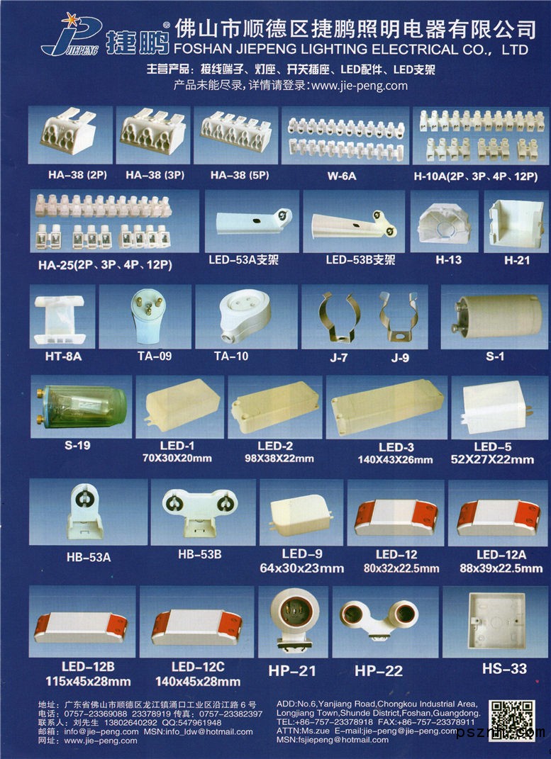 佛山市順德區(qū)捷鵬照明電器有限公司是一家專業(yè)生產(chǎn)接線排、接線端子、G13、G5、2G11、G24、G10Q、E27、E14燈座、啟輝器座、啟輝器、開關(guān)插座、配電箱、LED球泡燈配件、LED塑料天花燈配件、LED塑料筒燈配件、LED驅(qū)動器外殼,電子鎮(zhèn)流器外殼,電子變壓器塑料外殼,電感鎮(zhèn)流器骨架,電感變壓器骨架,尼龍?jiān)鷰Ъ捌渌鼰艟邿麸椢褰鹚芰吓浼纳a(chǎn)制造商。
