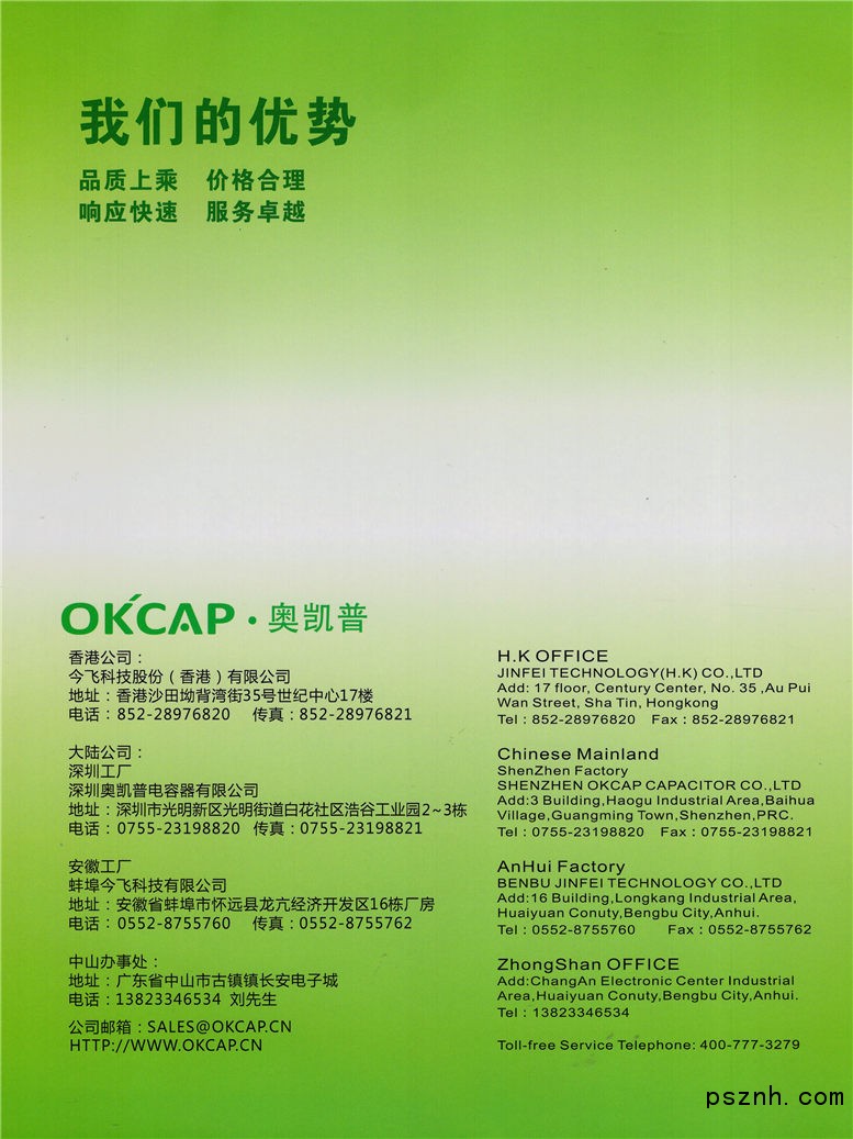 深圳奧凱普電容器有限公司成立于2006年,是一家集研發(fā)、生產(chǎn)、銷售鋁電解電容器于一體的高新技術企業(yè),經(jīng)過多年的不斷發(fā)展,公司生產(chǎn)規(guī)模、產(chǎn)品質(zhì)量和研發(fā)設計能力均躋身同行業(yè)前列。為進一步豐富及擴大產(chǎn)品線,2015底,公司在安徽新設工廠,成立蚌埠今飛科技有限公司,專注固態(tài)與螺栓電解電容的研發(fā)與生產(chǎn)。月總產(chǎn)能增加至2億余支。目前公司現(xiàn)有員工500余人,占地總面積約20000平方米,年產(chǎn)各類電解電容近30億支。