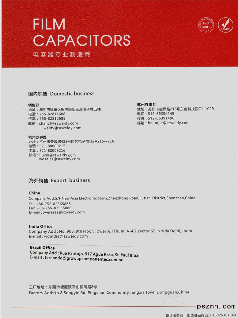 生產(chǎn)基地位于廣東省東莞市塘廈鎮(zhèn)平山工業(yè)園區(qū),廠區(qū)面積10000平米,員工總數(shù)200多人。經(jīng)過十多年的不懈努力,公司現(xiàn)已發(fā)展成為業(yè)界居于領(lǐng)先地位的薄膜電容器專業(yè)制造商,為照明、家電、通訊、汽車電 子、工業(yè)控制、綠色能源等各類整機(jī)客戶提供薄膜電容器一站式的解決方案。