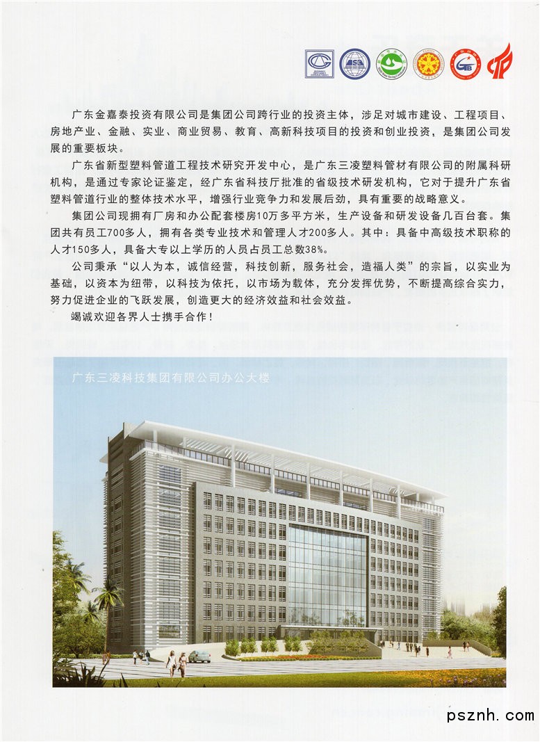 廣東省金嘉泰投資有限公司是集團(tuán)公司發(fā)展的重要板塊,涉足城市建設(shè)、工程項(xiàng)目、房地產(chǎn)業(yè)、實(shí)業(yè)、商業(yè)貿(mào)易、教育、高新科技的項(xiàng)目投資和創(chuàng)業(yè)投資等領(lǐng)域。廣東省工程技術(shù)研究開發(fā)中心是通過專家論證鑒定,經(jīng)廣東省科技廳、發(fā)改委和經(jīng)信委聯(lián)合批準(zhǔn),以三凌塑料管材公司為依托的省級(jí)技術(shù)研發(fā)機(jī)構(gòu)。它對(duì)于提升塑料管道行業(yè)的整體技術(shù)水平,增強(qiáng)行業(yè)競(jìng)爭(zhēng)力和發(fā)展后勁,具有重要的戰(zhàn)略意義。研發(fā)中心主要是通過對(duì)新型塑料管道工程技術(shù)的深入研究,創(chuàng)新改性復(fù)合材料在塑料管道領(lǐng)域的技術(shù),研究開發(fā)各類新產(chǎn)品、新材料,形成具有自主知識(shí)產(chǎn)權(quán)的核心技術(shù),為同行業(yè)提供技術(shù)示范、技術(shù)咨詢和技術(shù)服務(wù),促進(jìn)研發(fā)成果產(chǎn)業(yè)化。
