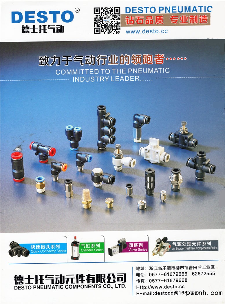 公司本著“鉆石品質(zhì)、專業(yè)制造”的宗旨,堅(jiān)持以熱忱的服務(wù),合理的價(jià)格,為用戶及時(shí)提供符合標(biāo)準(zhǔn)規(guī)范的優(yōu)質(zhì)產(chǎn)品。以“持續(xù)穩(wěn)健專業(yè)化、為斷創(chuàng)新跨越化”為發(fā)展模式,致力于做全國(guó)氣動(dòng)的領(lǐng)導(dǎo)品牌。 一個(gè)富有朝氣,蓬勃向上的德士托公司,竭誠(chéng)歡迎各界有識(shí)之士前來(lái)加盟,洽談,共創(chuàng)卓越!