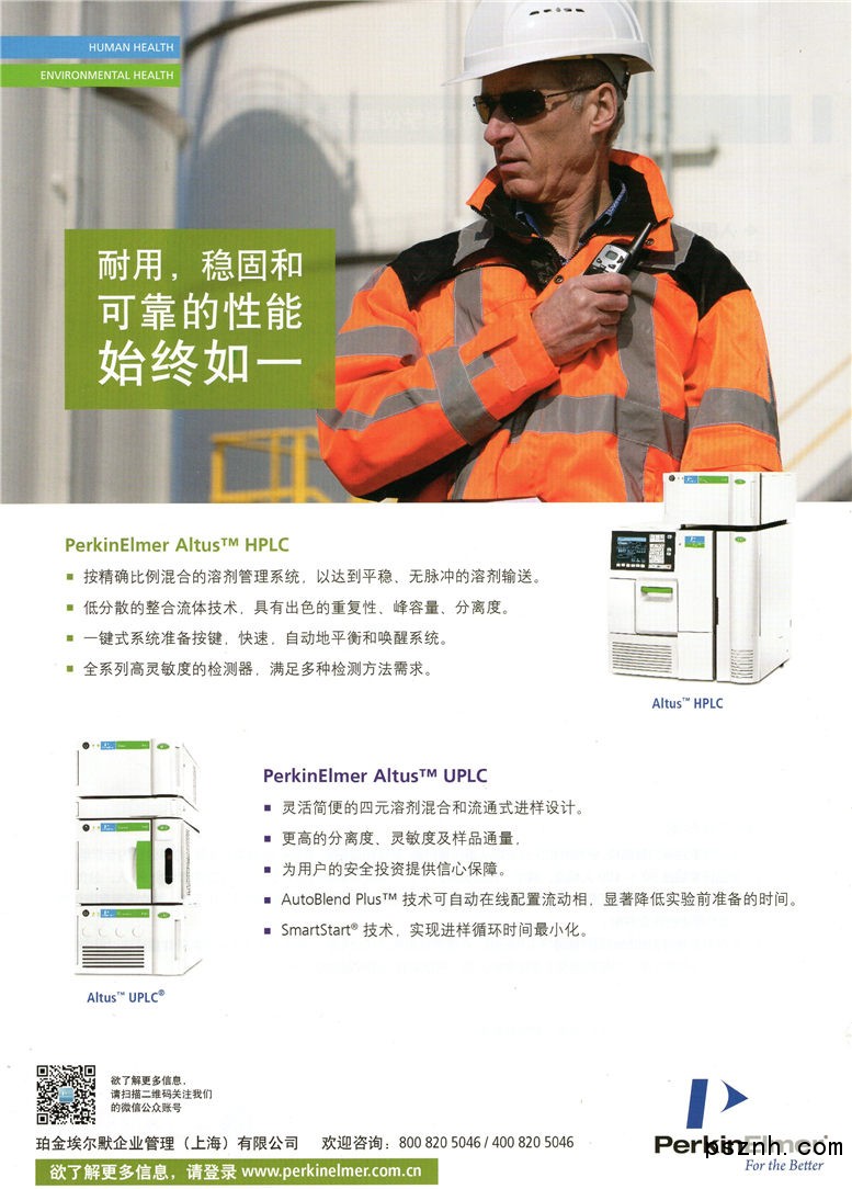 珀金埃爾默(PerkinElmer Inc.)是專注于人類健康和環(huán)境安全的全球技術(shù)領(lǐng)先公司。在全球擁有7000名員工,為超過150個國家和地區(qū)的客戶提供產(chǎn)品和服務(wù),涉及疾病診斷、科學研發(fā)、環(huán)境安全、食品檢測等多個領(lǐng)域。
