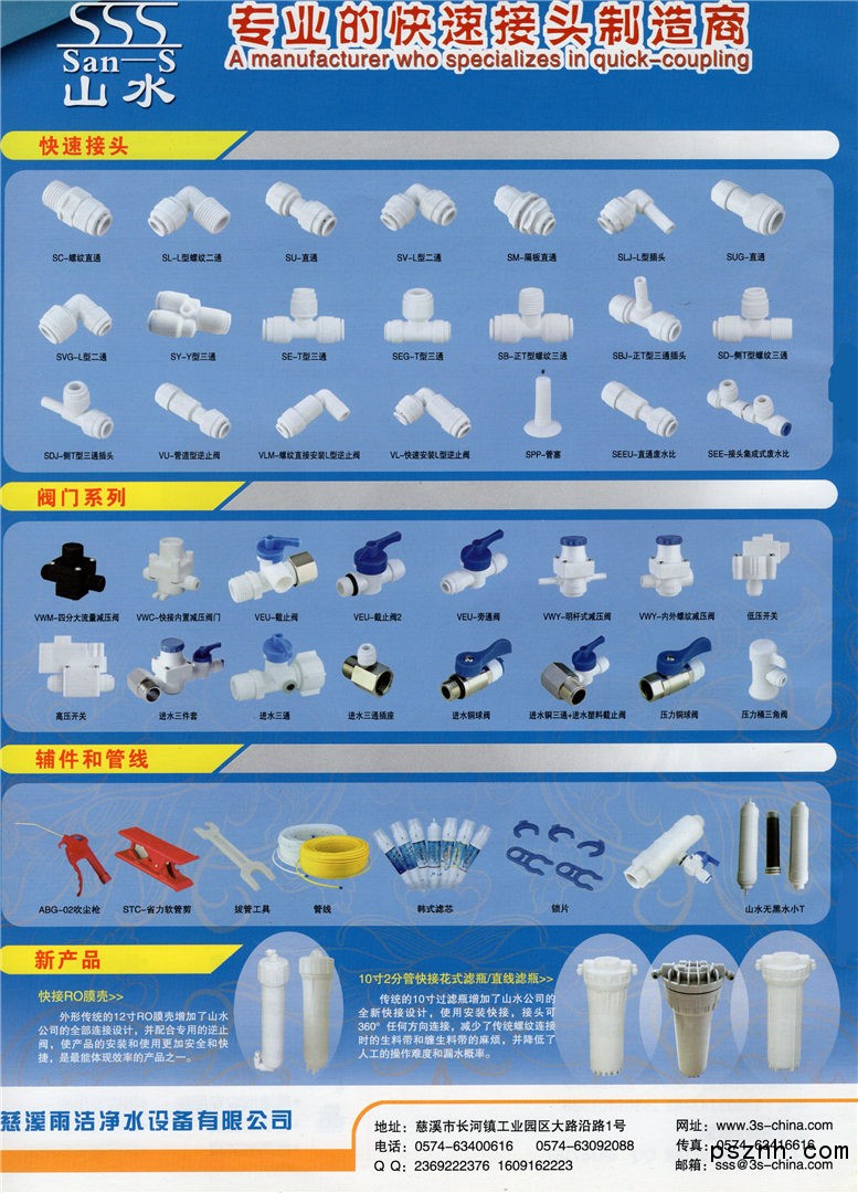 慈溪雨潔凈水設備有限公司 氣動快速接頭 調(diào)速閥 切管刀