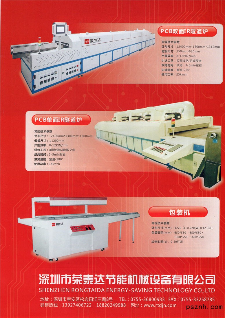 深圳市榮泰達節(jié)能機械設(shè)備有限公司,是國內(nèi)領(lǐng)先的LED、PCB等自動涂布烘干印刷設(shè)備廠家,致力于隧道爐,真空包裝機,涂布機,工業(yè)烤箱,手動、半自動絲印機、UV光固機,拉網(wǎng)機,曬版機等印刷設(shè)備的研發(fā)與推廣事業(yè),公司主要產(chǎn)品包括:高效節(jié)能型隧道爐,線路板雙面隧道爐,節(jié)能型真空包裝機,UV紫外線光固機,半自動絲印機,全自動絲印機,涂布機。