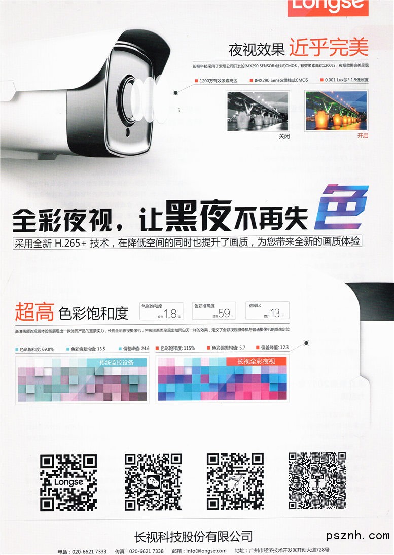 廣州長視科技股份有限公司創(chuàng)建于2006年,是一家集研發(fā)、生產(chǎn)、銷售為一體的高新科技企業(yè)。公司工廠面積超過5萬平方米,職員超過2000人,致力于研發(fā)、生產(chǎn)高品質(zhì)的安防監(jiān)控產(chǎn)品,是目前中國大陸最好的監(jiān)控設(shè)備生產(chǎn)廠家之一。產(chǎn)品通過了CE、FCC、RoHS等國際認(rèn)證。產(chǎn)品范圍涵蓋了紅外防水?dāng)z像機(jī),半球攝像機(jī),槍型攝像機(jī),網(wǎng)絡(luò)攝像機(jī),高速球攝像機(jī),數(shù)字硬盤錄像機(jī)及CCTV鏡頭、支架、 護(hù)罩等周邊產(chǎn)品。