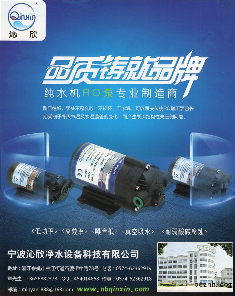 寧波沁欣凈水設(shè)備科技有限公司是一家集研發(fā),生產(chǎn)、銷售于一體的科技型企業(yè),公司占地面積達15000平方米,廠房8500平方米,擁有多名技術(shù)研發(fā)工程師,公司充分發(fā)揮在技術(shù)創(chuàng)新,產(chǎn)品研發(fā)和生產(chǎn)制造等方面的優(yōu)勢,擁有先進的生產(chǎn)設(shè)備和嚴格的質(zhì)量管理體系,有多余生產(chǎn)電機產(chǎn)線,專業(yè)生產(chǎn)RO增壓泵,純水機、商用機、超濾機、配件加工等產(chǎn)品,用專注態(tài)度成就專業(yè)品質(zhì)。公司本著“精心管理”不斷創(chuàng)新、科技領(lǐng)先、共享成功、經(jīng)營理念、把市場領(lǐng)先、技術(shù)領(lǐng)先、管理領(lǐng)先、作為主要目標、力爭做到,高標準、高質(zhì)量為奮力打拼,創(chuàng)造價值,服務(wù)客戶。