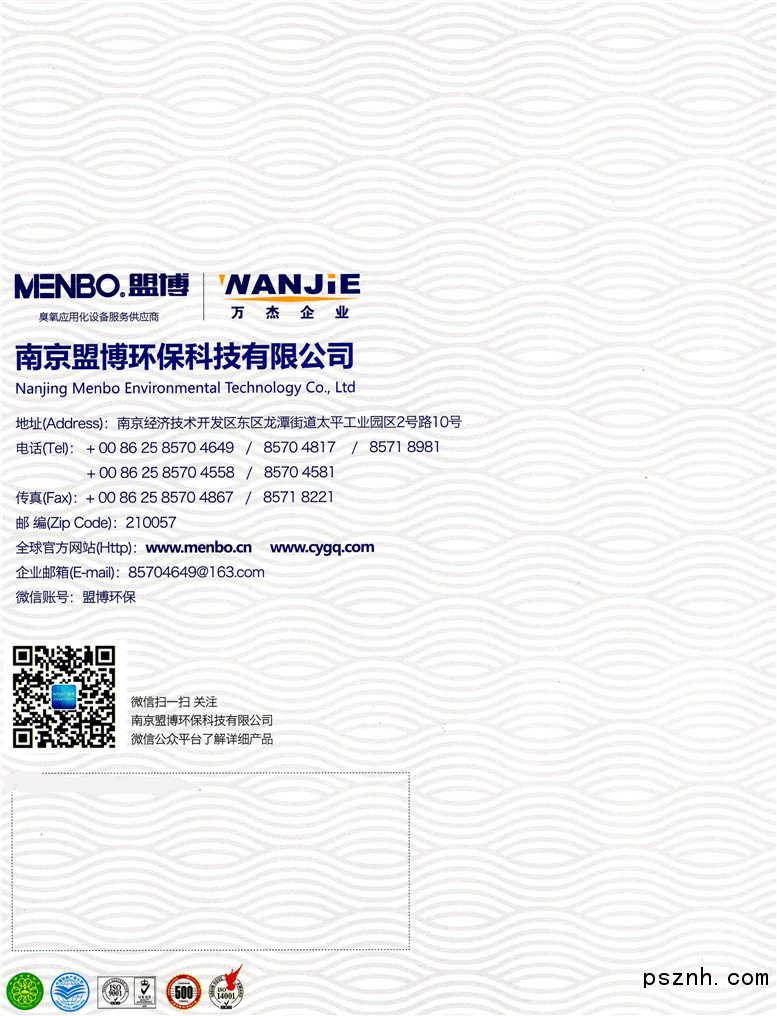 南京盟博作為中國(guó)臭氧協(xié)會(huì)、環(huán)境保護(hù)協(xié)會(huì)會(huì)員單位擁有多年臭氧應(yīng)用化設(shè)備、環(huán)保設(shè)備、電熱設(shè)備等的研發(fā)、設(shè)計(jì)、制造與服務(wù)的歷史,“ ”牌環(huán)保成套設(shè)備嚴(yán)格按照ISO9001-2000質(zhì)量管理體系標(biāo)準(zhǔn)研發(fā)、設(shè)計(jì)與制造世界一流的成套環(huán)保設(shè)備,擁有多年大型系統(tǒng)的良好運(yùn)行業(yè)績(jī)。