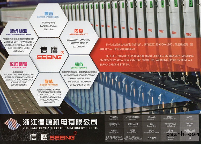 浙江德源機電有限公司位于浙江省諸暨市江龍工業(yè)園區(qū),集研發(fā)、產(chǎn)銷、服務(wù)于一體,是專業(yè)生產(chǎn)電腦繡花機的高科技企業(yè)、廠區(qū)占地八萬平方米,建筑面積達五萬多平方米,員工三百余人,具有年生產(chǎn)電腦繡花機三千臺的成產(chǎn)能力。屬浙江省規(guī)模較大的電腦繡花機生產(chǎn)企業(yè)。