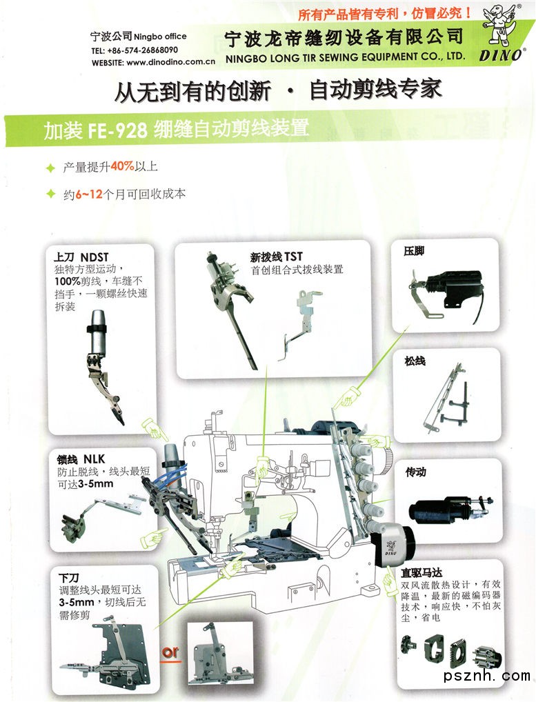龍帝剪線專家:自1990年至今實踐證明,加裝龍帝自動剪線系統(tǒng),可立即提高 35~40% 生產(chǎn)力,每年都可回收加裝設備成本。