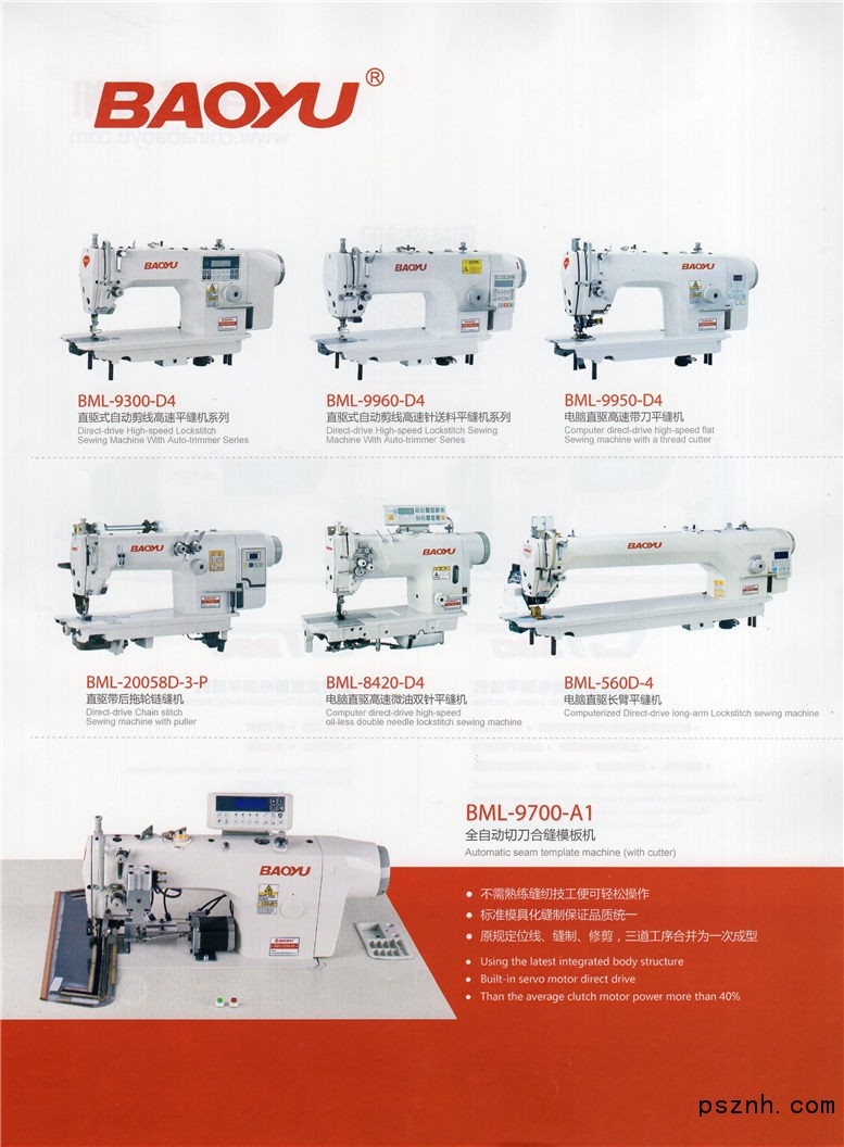 優(yōu)質(zhì)零件、國際先進加工設備、德式加工工藝、多年一崗的專注人工。BAOYU傳承“百年品質(zhì)、百年企業(yè)”的經(jīng)營夢想,以做精、做強、做大的專注精神,為優(yōu)質(zhì)客戶提供專業(yè)縫制設備及高性價比價值!