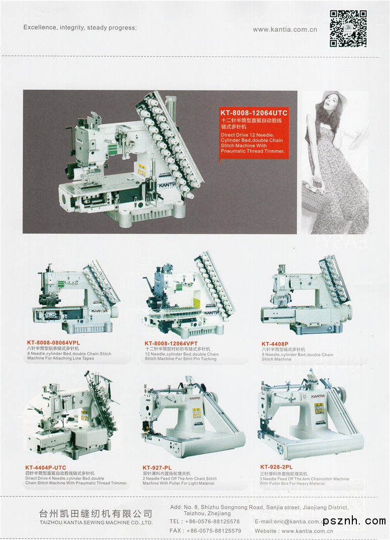 臺州市凱田縫紉機有限公司是以制造和銷售工業(yè)縫紉機為主導(dǎo)產(chǎn)業(yè)的專業(yè)型/現(xiàn)代化企業(yè),公司的核心產(chǎn)品為多針機全系列產(chǎn)品。十余載的技術(shù)研發(fā)經(jīng)驗造就“凱田”領(lǐng)先的制造水準,嚴謹細致的檢測、裝配、制造工序,使得產(chǎn)品質(zhì)量得到了可靠的保障。與時俱進,公司通過引進先進的日本技術(shù)以保持領(lǐng)先優(yōu)勢;科技創(chuàng)新,我們將不斷開發(fā)高質(zhì)量的產(chǎn)品,視優(yōu)良的售后服務(wù)為企業(yè)提升的源泉,秉承“精益求精,誠實經(jīng)營,穩(wěn)步前行”的發(fā)展理念,為客戶創(chuàng)造價值、為員工創(chuàng)造機會、為社會創(chuàng)造效益。