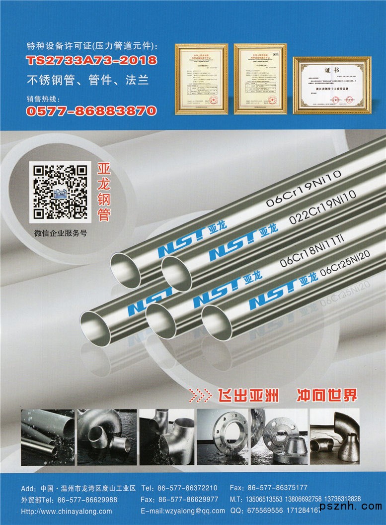 溫州市亞龍鋼管廠專業(yè)生產(chǎn)不銹鋼管、不銹鋼彎頭、無縫三通、焊接三通、異徑管、翻邊短節(jié)、不銹鋼法蘭、不銹鋼管子內(nèi)外絲等系列管件產(chǎn)品。(材質(zhì):321、304、304L、316、316L) 。