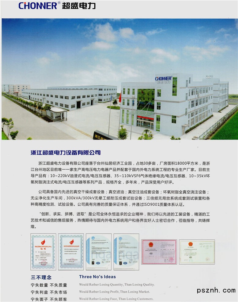 浙江超盛電力設(shè)備有限公司,簡稱“超盛電力”。座落于臺(tái)州仙居經(jīng)濟(jì)工業(yè)園,占地30多畝,廠房面積18000平方米,是浙江臺(tái)州地區(qū)一家生產(chǎn)高電壓電力電器產(chǎn)品并配套于國內(nèi)外電力系統(tǒng)工程的專業(yè)生產(chǎn)廠家,目前主導(dǎo)產(chǎn)品有:10~220kV油浸式電流/電壓互感器、35~110kVSF6氣體絕緣電流/電壓互感器、10~35kV環(huán)氧樹脂澆注式電流/電壓互感器等系列產(chǎn)品,規(guī)格齊全,多年來,產(chǎn)品深受用戶好評(píng)。