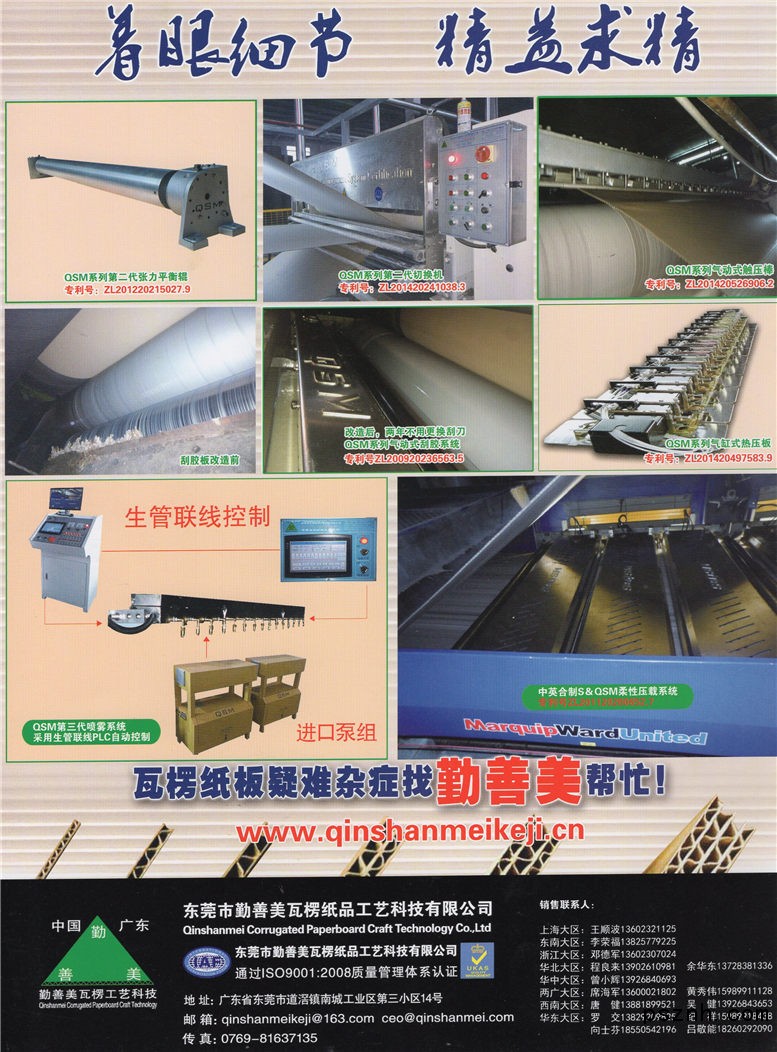 為提升產(chǎn)品質(zhì)量,將企業(yè)做穩(wěn),做強(qiáng),公司執(zhí)行7S和零缺陷生產(chǎn)管理法,嚴(yán)格按標(biāo)準(zhǔn)化作業(yè),配備有國內(nèi)先進(jìn)熱壓板,氣袋式鏈片壓載系統(tǒng)組裝生產(chǎn)線,月平均出產(chǎn)1.4M-2.8M雙面壓載系統(tǒng)20套,觸壓棒15套左右,已成為全球較大的上膠機(jī),雙面機(jī)改造產(chǎn)品制造基地。截止2013年底勤善美 累計(jì)改造配套臺(tái)灣,大陸及周邊國家瓦線1000余條,其中上膠機(jī),雙面機(jī)改造700余條。公司于2011年擴(kuò)大規(guī)模,并進(jìn)行品牌文化升級(jí),管理升級(jí)。憑借七年來瓦線改造過程中的技術(shù)沉淀及對(duì)紙板工藝技術(shù)的深入理解,以及自設(shè)的正規(guī)化獨(dú)立研發(fā)機(jī)構(gòu),已形成紙板工藝及紙板疑難雜癥研究系統(tǒng)化,專業(yè)化,實(shí)操化的集成規(guī)模效應(yīng)。