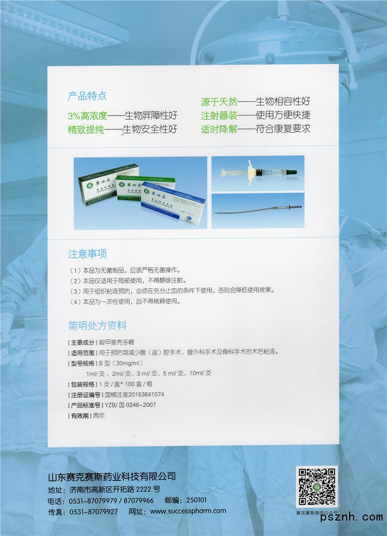 山東賽克賽斯藥業(yè)科技有限公司主要從事新特藥品、生物醫(yī)學(xué)材料及介入治療系列產(chǎn)品的研發(fā)、生產(chǎn)、銷售。公司具有雄厚的創(chuàng)新研究實(shí)力,現(xiàn)有博士后、博士、碩士等研發(fā)人員80余名,已形成一支年齡(人均年齡30歲)、學(xué)歷、知識(shí)結(jié)構(gòu)合理、富有創(chuàng)新精神的工作團(tuán)隊(duì)。公司雄厚的科研實(shí)力有力地推進(jìn)新產(chǎn)品研發(fā),已經(jīng)取得了三十多項(xiàng)科研成果及十余個(gè)專利項(xiàng)目。公司自主研發(fā)生產(chǎn)的“賽必妥”(手術(shù)防粘連液)、“碧靜”(鼻用過敏原阻隔軟膏)等產(chǎn)品,產(chǎn)品市場廣闊,深受用戶青睞。其中,“賽必妥”獲國家科技部“國家級(jí)重點(diǎn)新產(chǎn)品”稱號(hào),并獲得“山東省科技計(jì)劃專項(xiàng)”獎(jiǎng)勵(lì)。