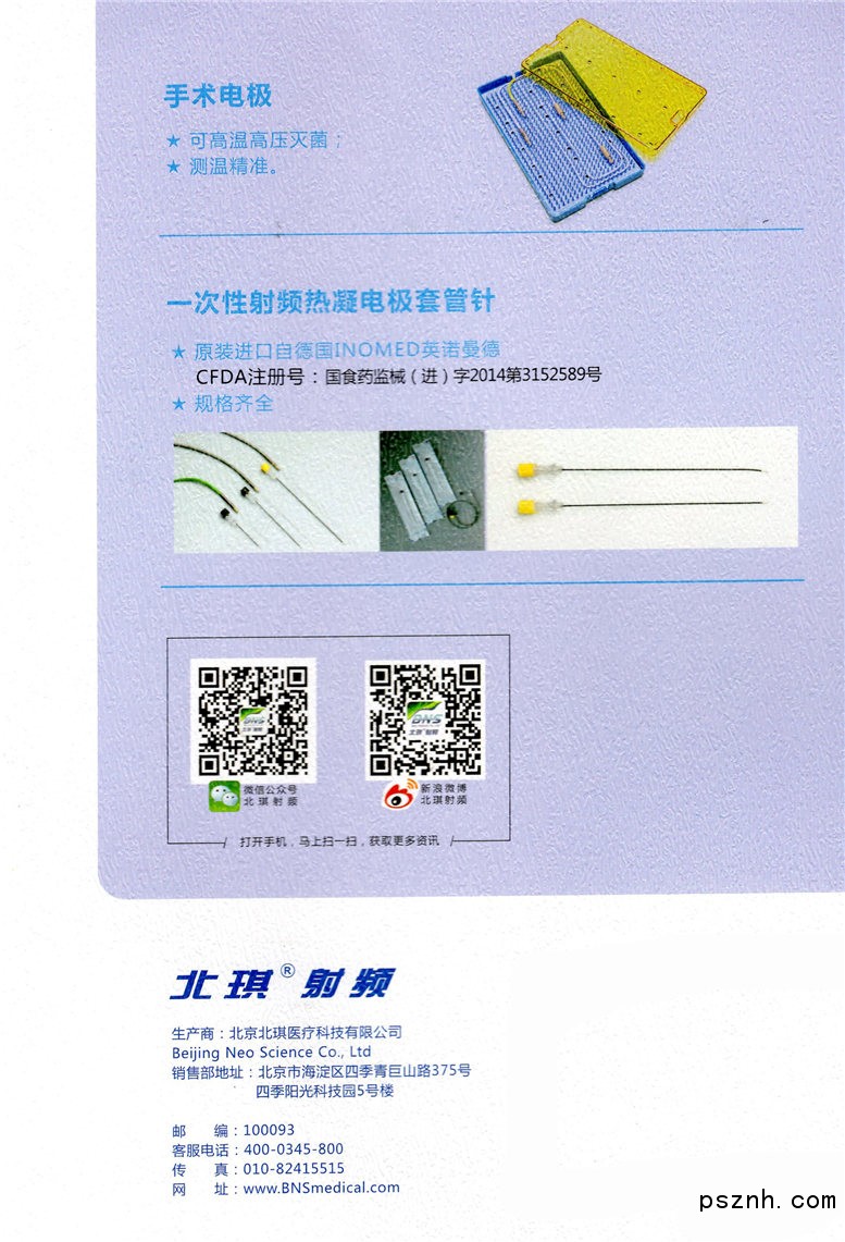 第一支適用于高溫高壓滅菌的疼痛射頻電極(2009年);